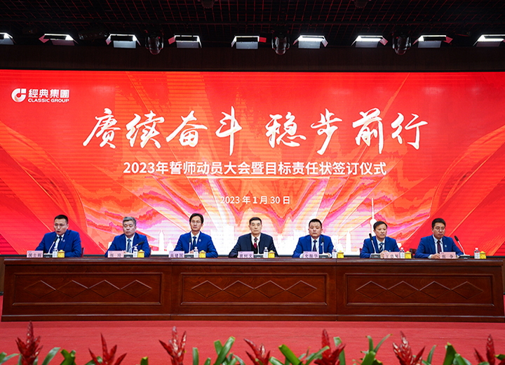 賡續(xù)奮斗 穩(wěn)步前行 經(jīng)典集團(tuán)2023年誓師動員大會暨目標(biāo)責(zé)任狀簽訂儀式召開。