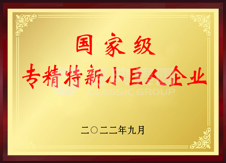 經(jīng)典集團(tuán)入選第四批國家級專精特新小巨人企業(yè)。