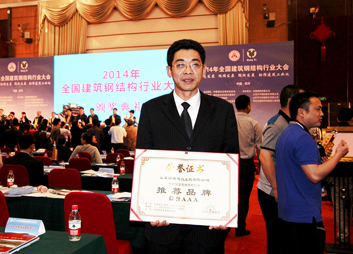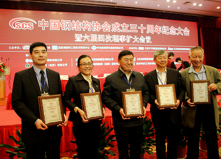 參加中國鋼結(jié)構(gòu)協(xié)會成立三十周年紀(jì)念大會當(dāng)選常務(wù)理事單位,榮獲首批全國鋼結(jié)構(gòu)行業(yè)AAA級信用企業(yè)、中國鋼結(jié)構(gòu)行業(yè)杰出貢獻(xiàn)人物、2014年度鋼結(jié)構(gòu)杰出人才獎。