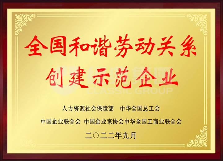 經(jīng)典集團(tuán)入選全國和諧勞動關(guān)系創(chuàng)建示范企業(yè)。