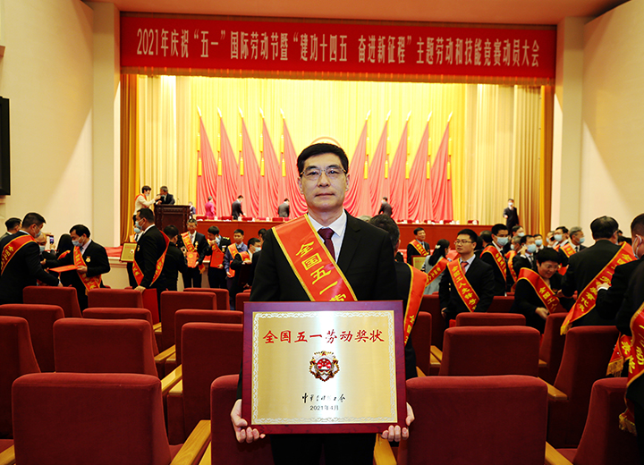 公司榮獲全國五一勞動獎狀,集團(tuán)董事長苗樹文登臺領(lǐng)獎。