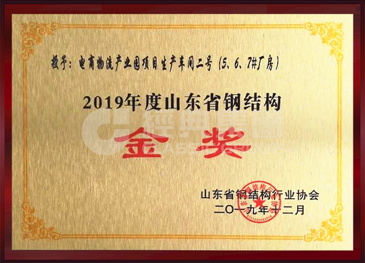公司榮獲山東省鋼結(jié)構(gòu)金獎、明星企業(yè)、優(yōu)秀企業(yè)家、優(yōu)秀項目經(jīng)理等獎項。
