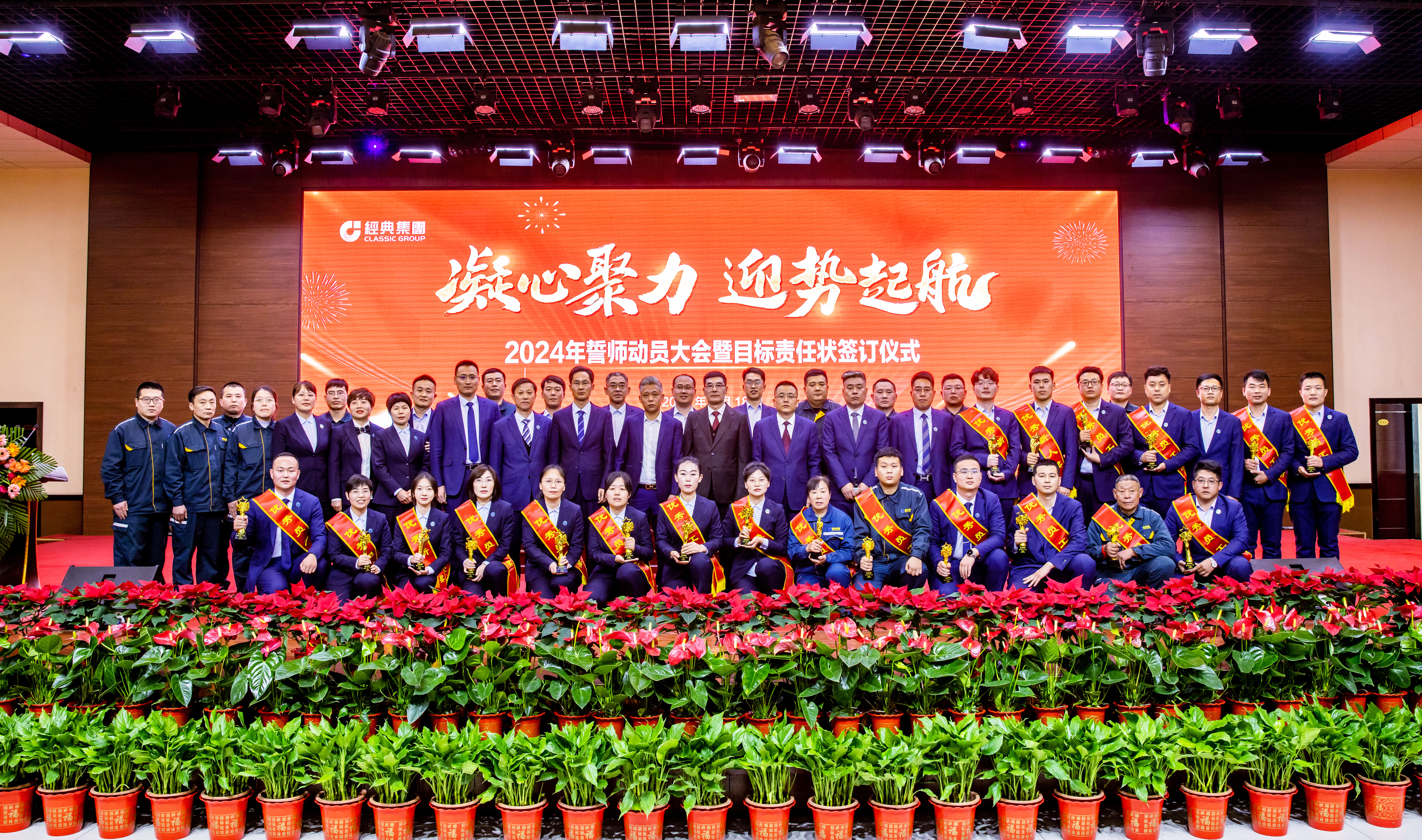 經(jīng)典集團(tuán)2024年誓師動員大會暨目標(biāo)責(zé)任狀簽訂儀式成功召開,拉開新一年奮斗序幕。