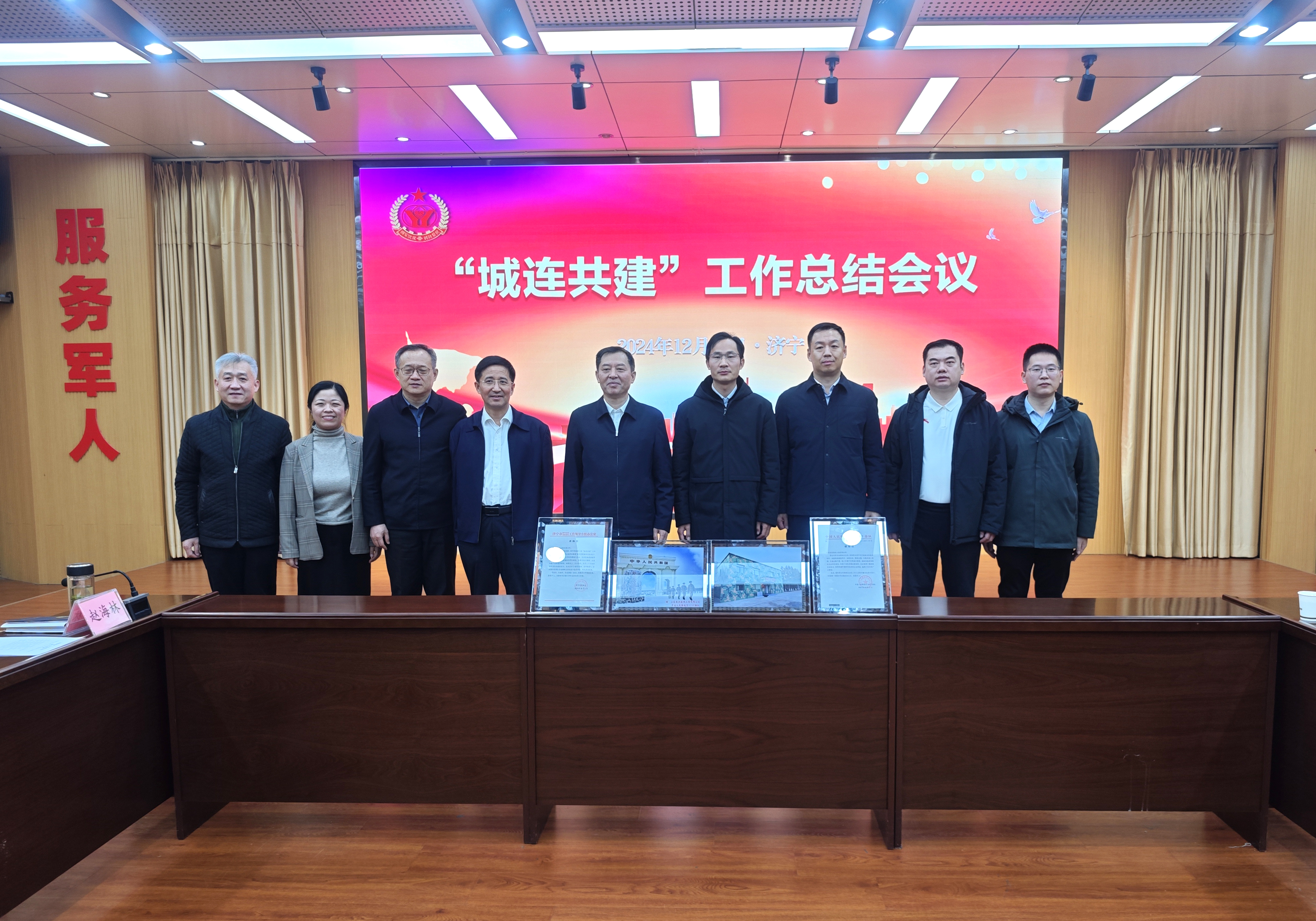 濟(jì)寧市“城連共建”工作總結(jié)會議召開,濟(jì)寧市人民政府副市長、市公安局局長、一級巡視員李海洋現(xiàn)場頒發(fā)了中國人民解放軍某部寫給山東經(jīng)典建設(shè)工程有限公司的感謝信、濟(jì)寧市雙擁辦的表揚信。”