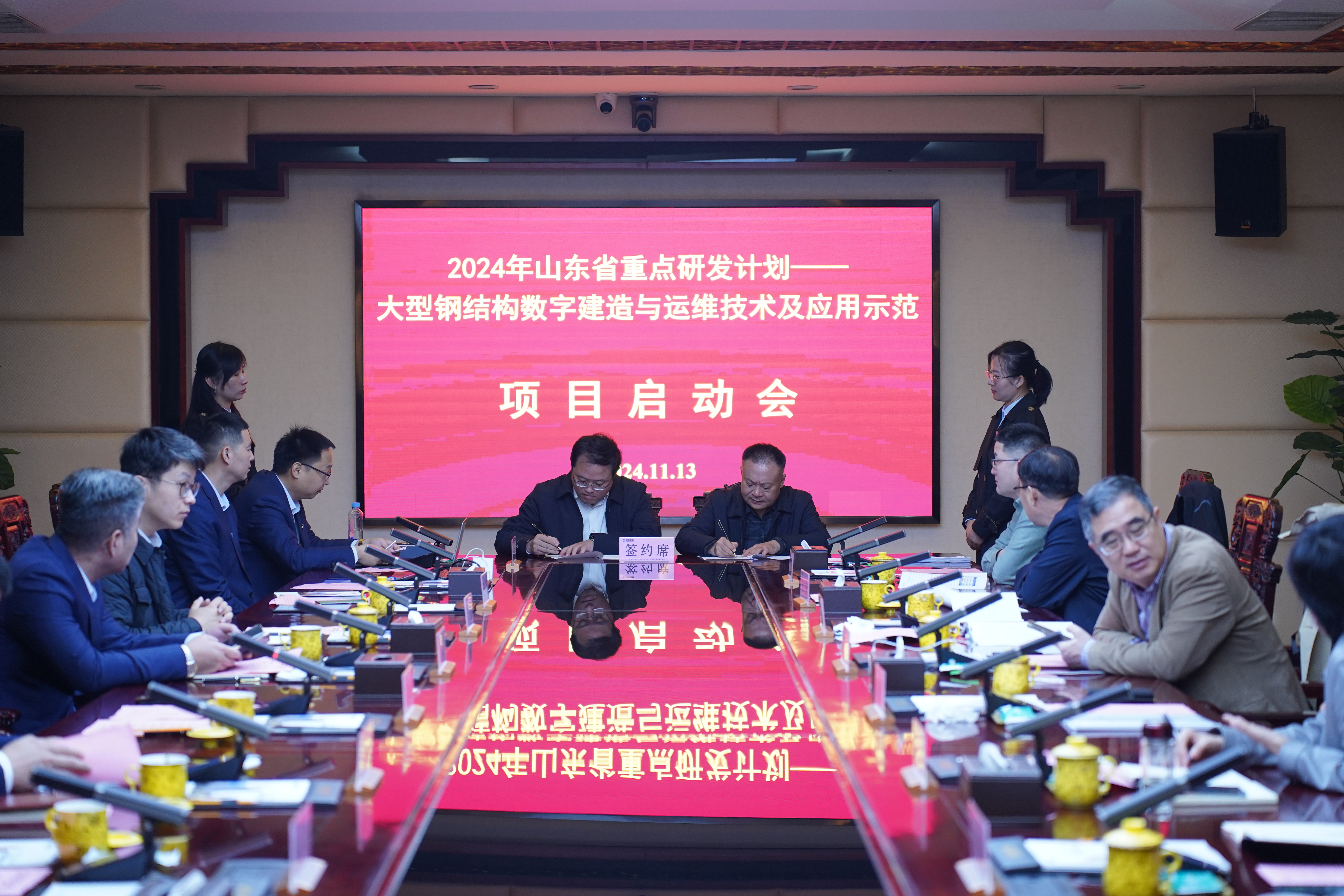 山東省重點研發(fā)計劃重大項目——“大型鋼結(jié)構(gòu)數(shù)字建造與運維技術(shù)及應(yīng)用示范”項目啟動會在經(jīng)典集團(tuán)召開。