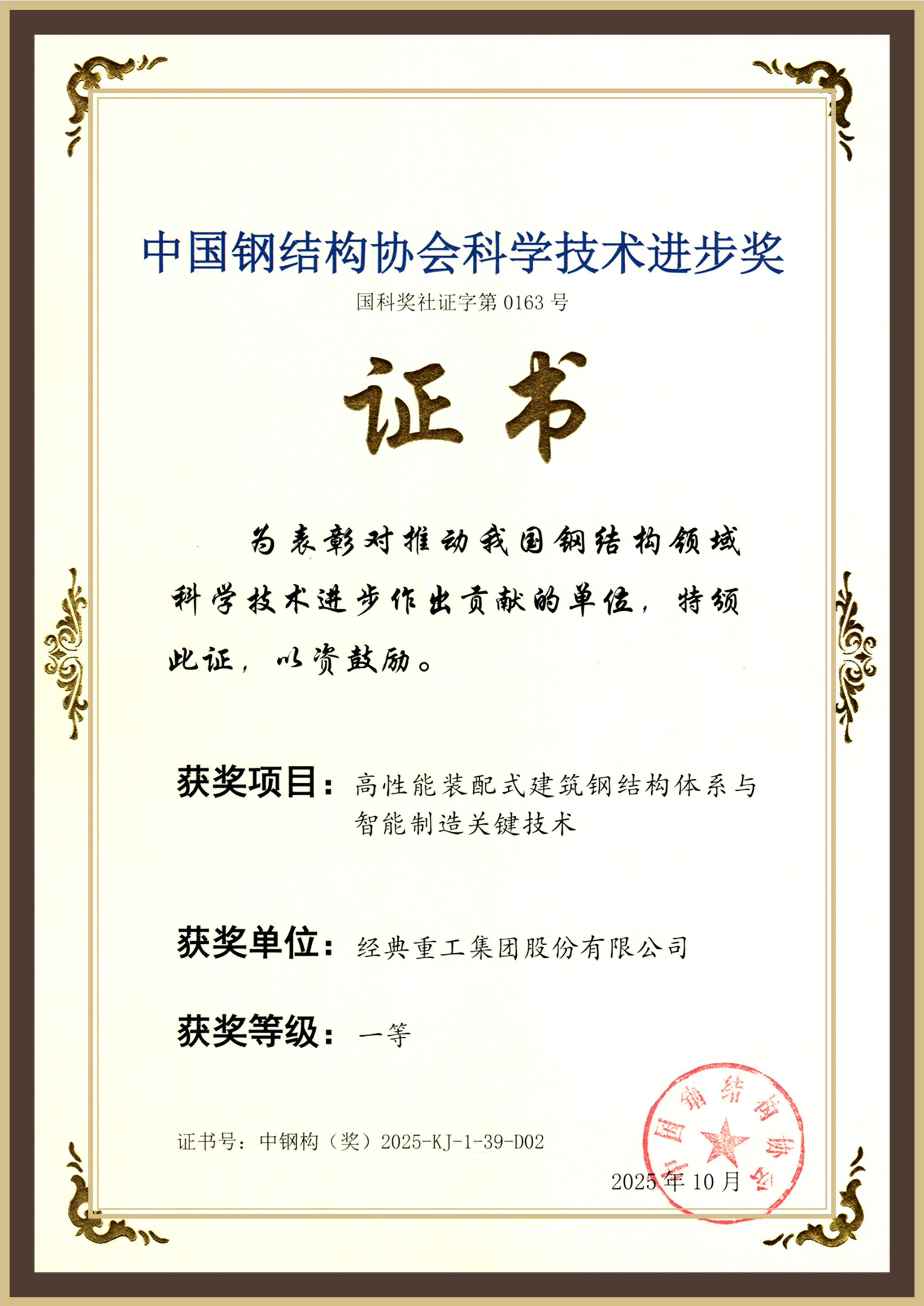 經(jīng)典集團(tuán)在中國鋼結(jié)構(gòu)協(xié)會成立四十周年紀(jì)念大會上榮膺“卓越貢獻(xiàn)獎”,彰顯卓越貢獻(xiàn)與影響力。