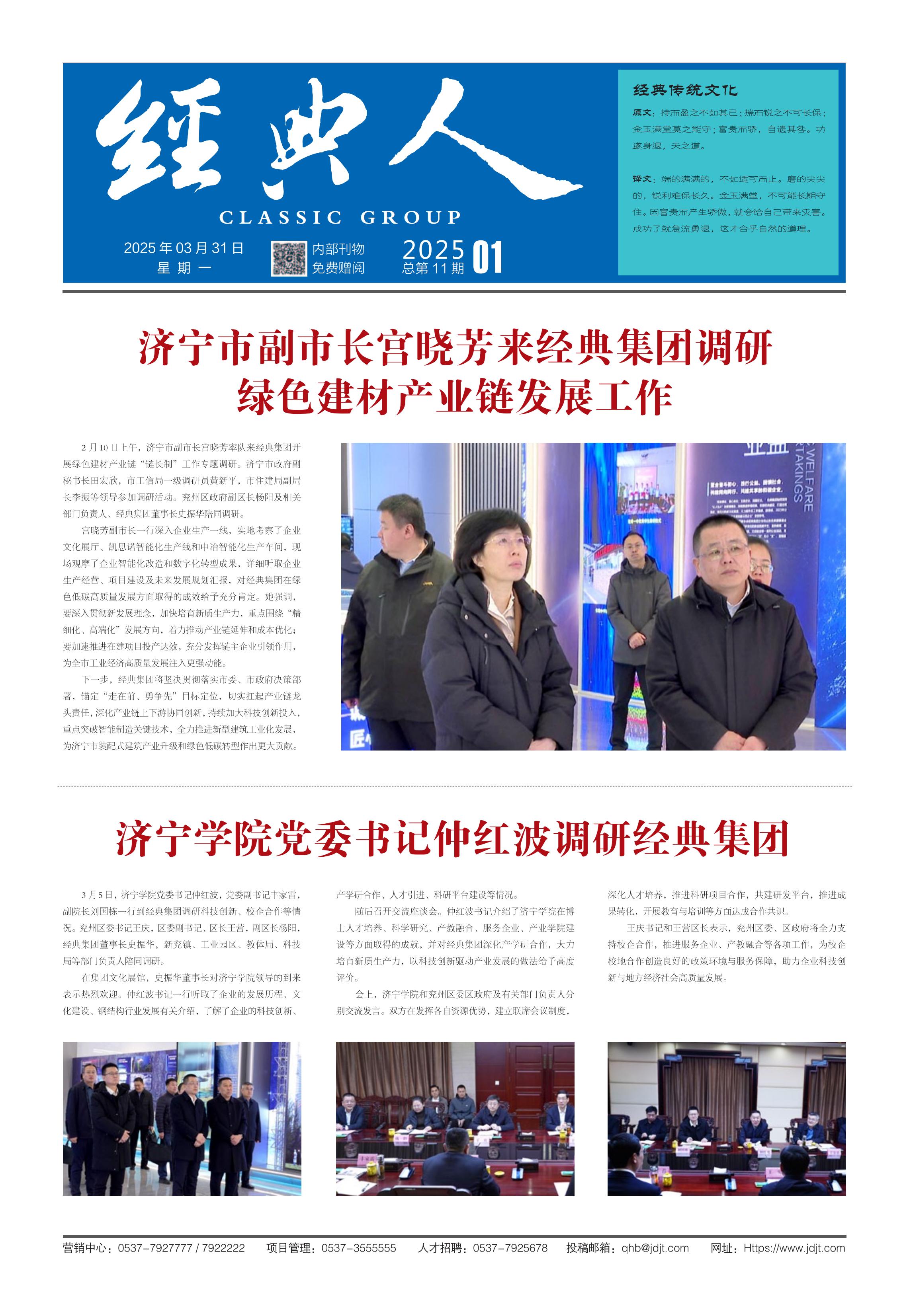 濟寧市副市長宮曉芳來經典集團調研綠色建材產業鏈發展工作