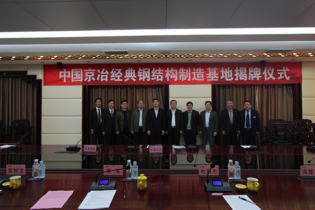 揭牌儀式前,中國京冶鋼結構事業部常務副總經理常好誦和經典集團董事長苗樹文在公司三樓會議中心共同簽訂了戰略合作框架協議。中國京冶與經典集團將本著平等、誠信、互惠、共贏的原則,利用各自優勢在鋼結構建筑領域建立長期戰略合作伙伴關系,在高層、超高層鋼結構建筑、大跨度鋼結構建筑、鋼結構住宅產業化、鋼結構工程設計施工制造管理、節能環保維護系統等領域開展項目工程合作、科研與技術合作。
