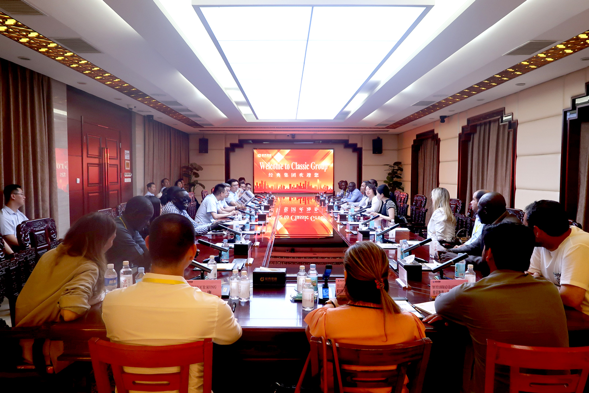 6月11日下午,由商務(wù)部主辦、山東外貿(mào)職業(yè)學院承辦的“發(fā)展中國家‘中國經(jīng)驗-中國社會制度與公共政策’研修班”一行20余人,在山東外貿(mào)職業(yè)學院援外培訓辦公室主任王保紅的帶隊下,蒞臨經(jīng)典集團參觀交流。經(jīng)典集團副總經(jīng)理兼生產(chǎn)總工張琦、副總經(jīng)理侯士輝陪同。