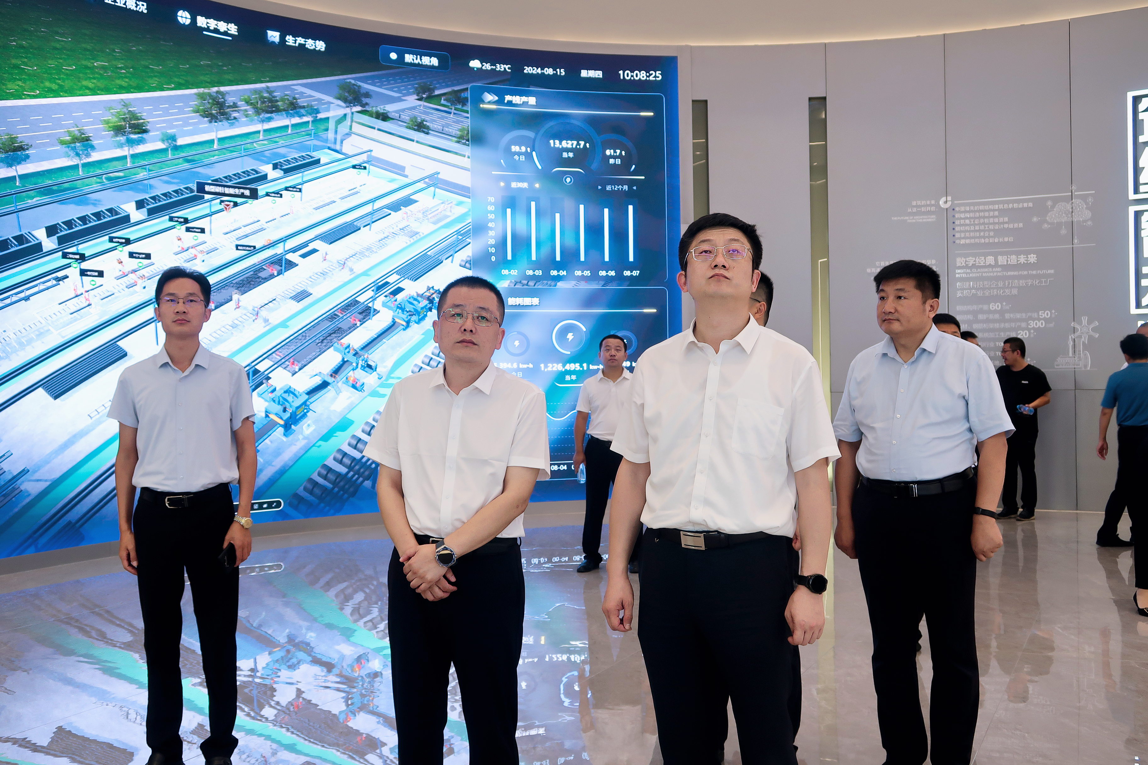 王慶書記一行來到集團展廳察看工業(yè)數字化信息平臺建設情況,詳細了解了數字生產、數字設備、數字孿生以及產業(yè)數字化發(fā)展等情況,對經典集團數字化轉型的先進做法和取得成效給予了充分肯定。他強調,要繼續(xù)保持創(chuàng)新發(fā)展的良好勢頭,加快推進數字化轉型,不斷深化數字賦能工業(yè)發(fā)展,探索更多新技術、新應用、新模式,進一步提升企業(yè)的智能化水平和核心競爭力。