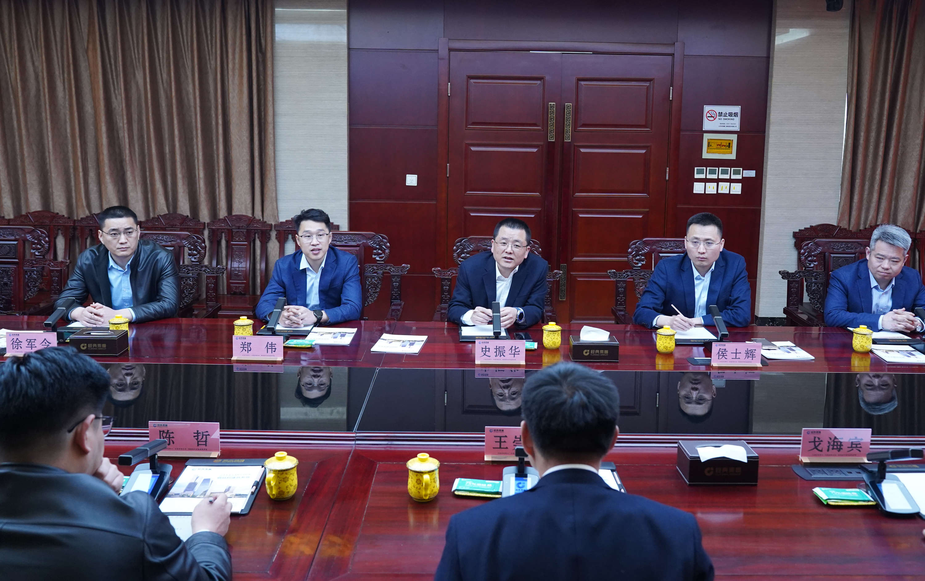 隨后召開合作洽談會。王崇景總經理介紹了濟寧能源發展集團實施“一體兩翼、雙輪驅動+園區經濟”戰略,加快構建“12326”產業矩陣,發展新能源、港航物流、高端制造、大宗商品貿易等業務有關情況,并對經典集團發揮產業鏈優勢,創新發展模式,建設精品工程,打造產業集群給予了高度評價。