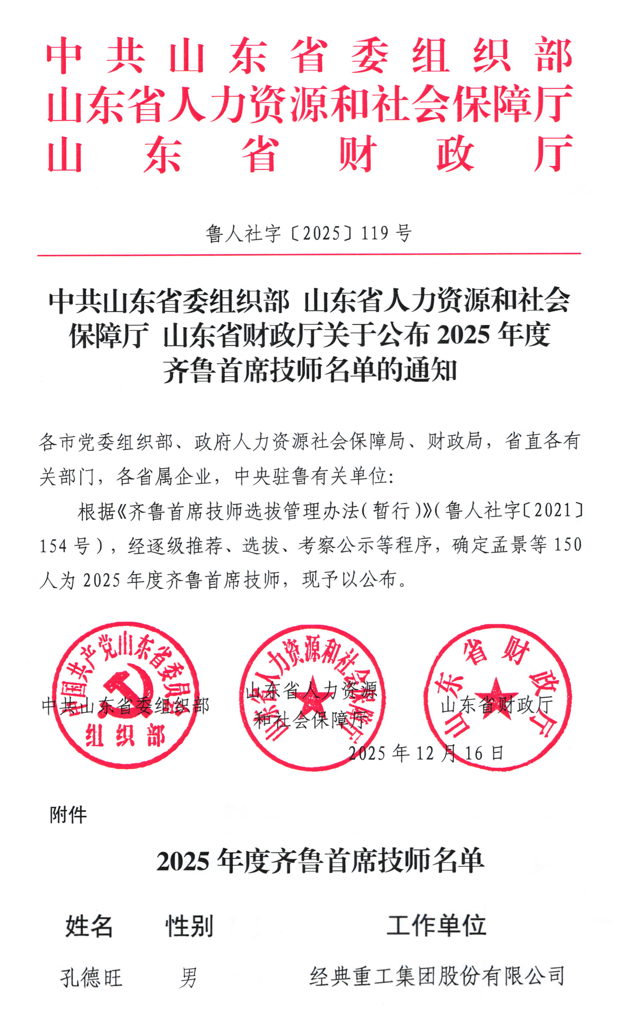 近日,山東省人力資源和社會保障廳正式公布 2025 年齊魯首席技師名單,優(yōu)秀共產(chǎn)黨員、高級技師孔德旺榮耀入選,經(jīng)典工匠再度獲得省級技能領(lǐng)域這一重磅殊榮,彰顯了企業(yè)人才培育的深厚積淀與卓越成效。